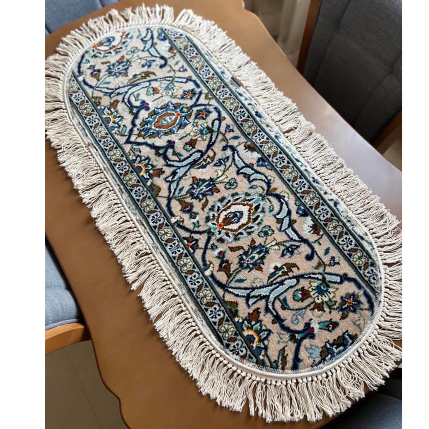 Handgefertigte Wollteppich-Tischdecke – Oval, Traditionelles Design